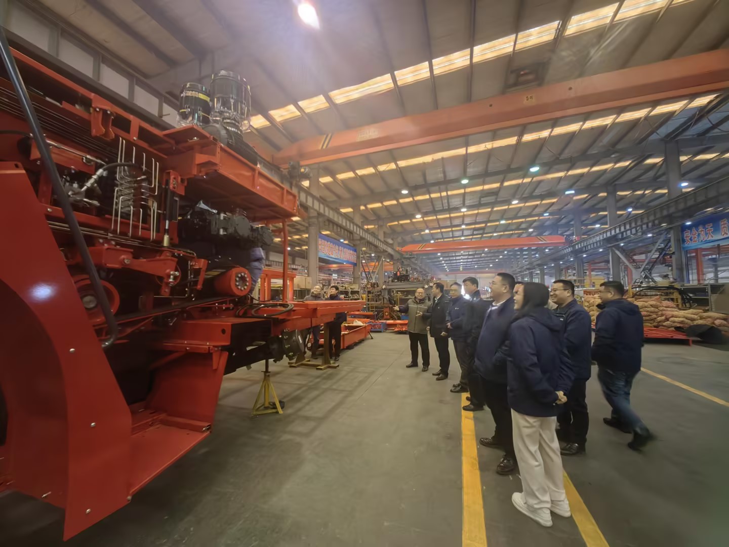 本次活动从走进车间开始,侯忠超带领与会党员同志共同参观了现代农装生产车间。通过近距离观摩,对生产流程、产品特点、工艺技术及安全管理等有了更全面的了解,促进双方信息互通和深入交流。