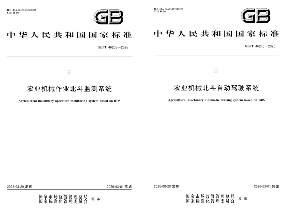 近日,国家市场监督管理总局发布《农业机械作业北斗监测系统》(GB/T 46268-2025)和《农业机械北斗自动驾驶系统》(GB/T 46270-2025)两项国家标准,作为全国农业机械标准化技术委员会农业电子分会秘书处依托单位,中国农机院机电所不仅牵头起草关键标准,更在标准制定全流程中发挥统筹协调作用,为智能农机标准体系完善与农业现代化发展提供有力支撑。