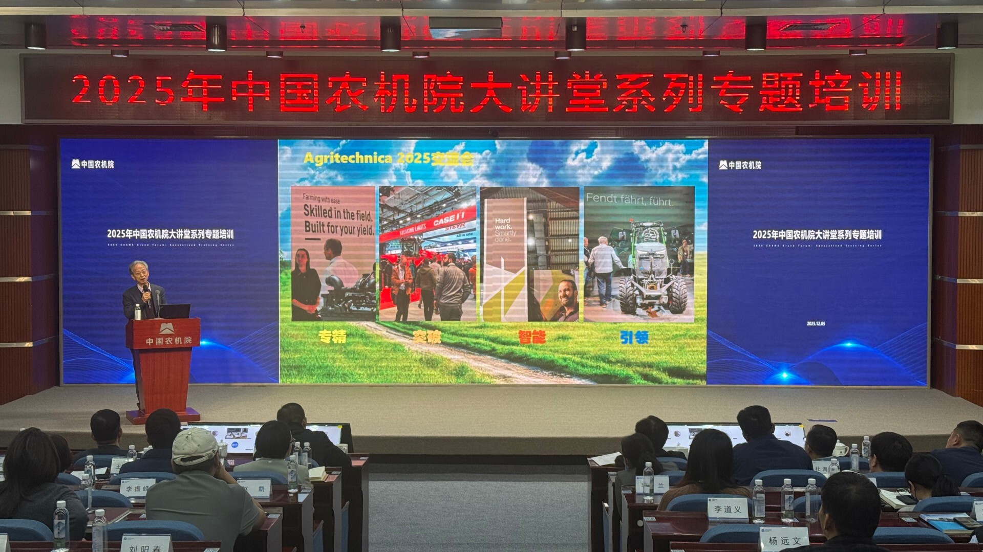 为全面总结2025年武汉国际农机展与德国汉诺威国际农机展考察成果,深入分析国内外农机装备技术现状与前沿趋势,科学谋划“十五五”农机发展路线,2025年12月5日,中国农机院大讲堂举办“国内外农机展考察观摩分享”专场活动,副总经理王振华主持。